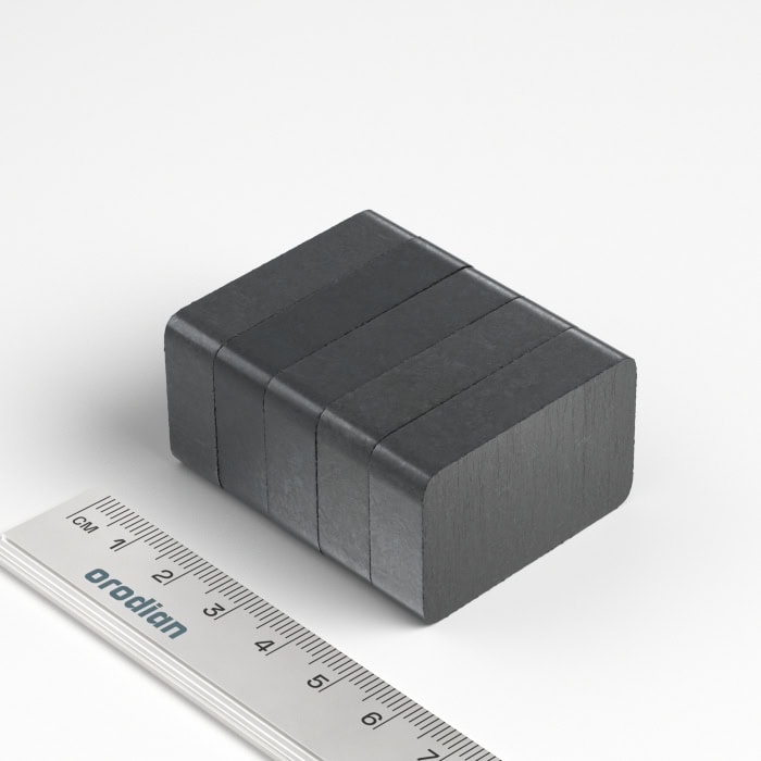 A téglatest alakú ferrit mágnes anyaga Fe2O3. Ez a mágnestípus a leggyengébb mágnes kínálatunkban. Sok esetben azonban ez az erő is elegendő.